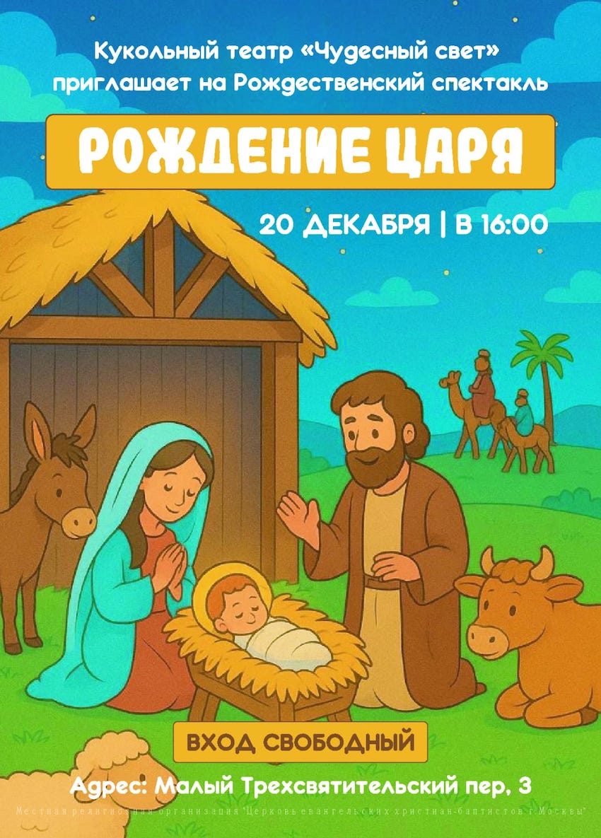 Приглашаем на Рождественский спектакль 20 декабря, в субботу, в 16:00 в Московской Центральной церкви.