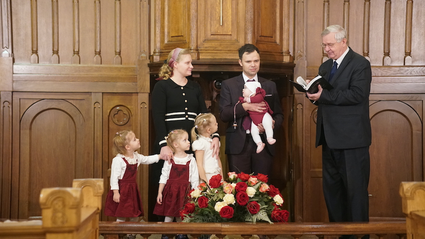 25 января на утреннем собрании совершалась молитва благословения над младенцем семьи хористов нашей церкви. Свою дочку Дану принесли Илья и Юна Галс для пасторской молитвы, которую совершил пресвитер нашей церкви Сергей Николаевич Золотаревский.